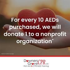 From September 15 through November 30, 2025, Downers Grove CPR Ltd. will donate one AED for every 10 AEDs sold. Businesses that purchase 10 AEDs will have the opportunity to choose the nonprofit organization that will benefit, or they may contribute the donation to one of the Chicagoland nonprofits already partnered with Downers Grove CPR Ltd.